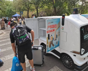 公司此次安排了两辆无人驾驶行李配送车帮助新生运送行李,新生在报到处只需将行李或物品放入车柜,然后跟随无人车前往宿舍即可,节省人力、物力,提高新生搬运行李效率,期间共计运送21趟、125件行李。该项迎新服务是学校首次使用无人车,充满科技感的无人车穿梭在迎新校园路上,成为本次迎新工作的亮点,获得新生及其家长、学校领导和师生的高度好评!